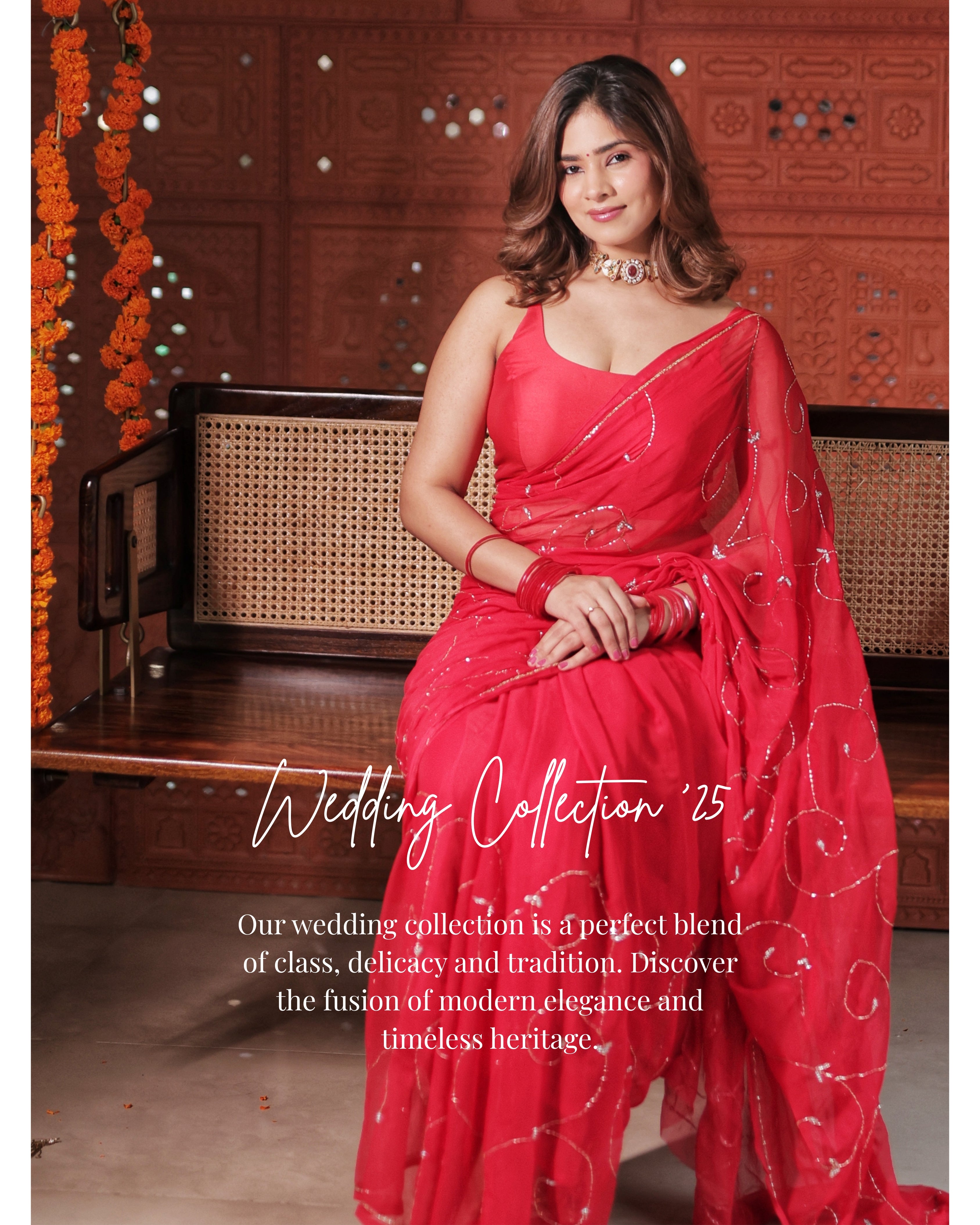 Maharani- Royal Red Pre-Pleated Saree