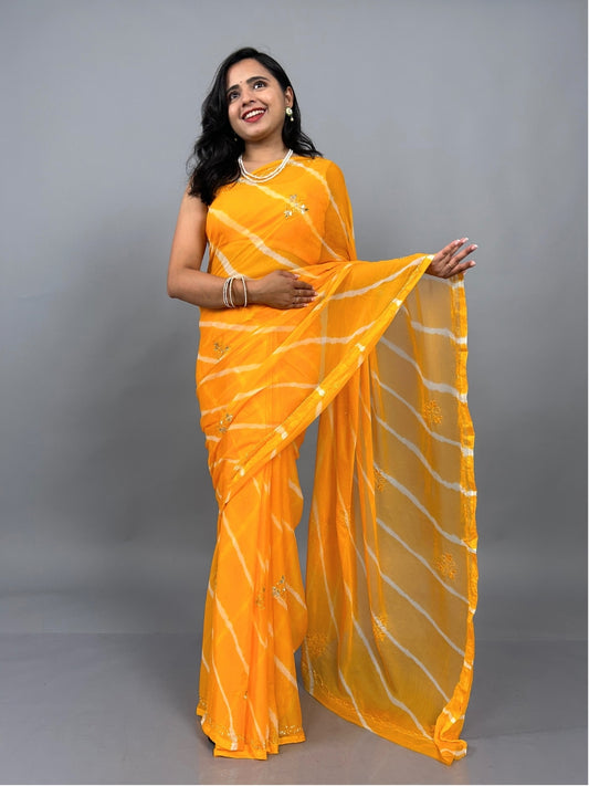 Check-out the latest collection of yellow chiffon sarees for Basant Panchmi and celebrate the onset of spring in style!