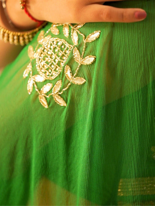 Maharani- Green Pre-Pleated Saree
