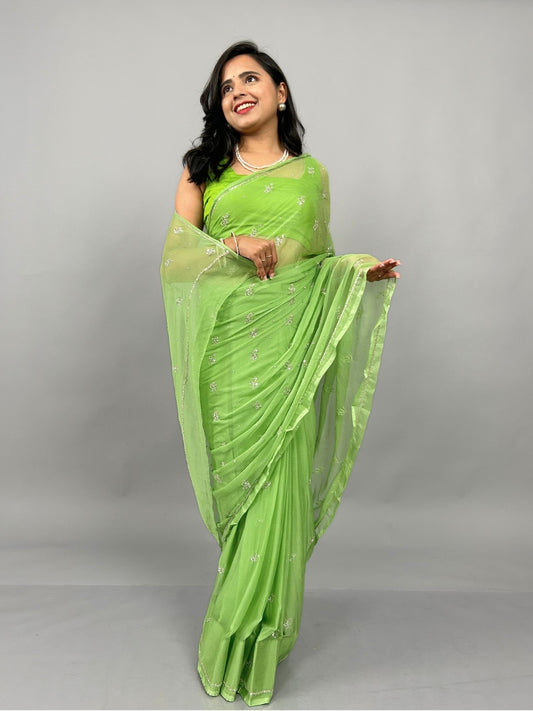 Sitaron ki Mehfil- Sage Green Pre-Pleated Saree