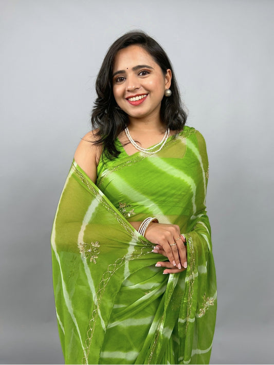 Lahariya- Pista Green Pre-Pleated Saree