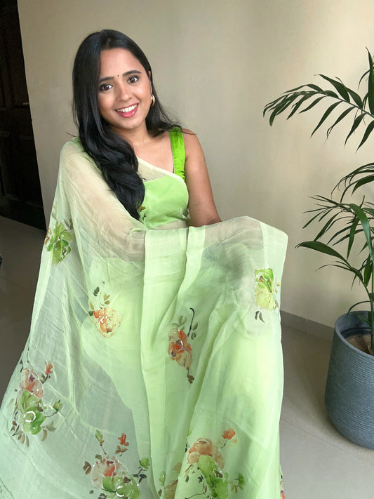 Mrunal- Sage Green Pre-Pleated Saree
