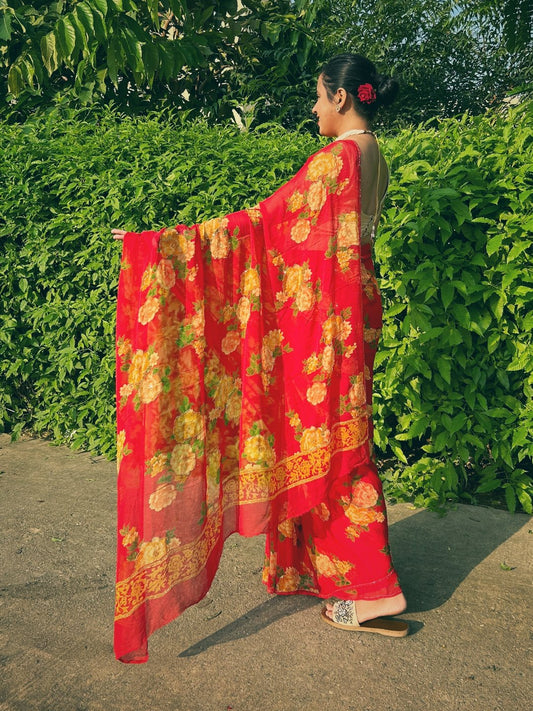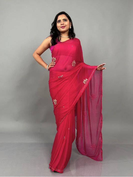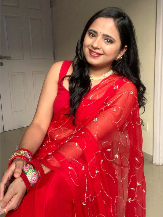 Desi Girl - Ruby Red Pre-Pleated Saree