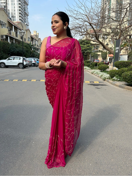 Banno Tera Swagger- Rani Pink Pre-Pleated Saree